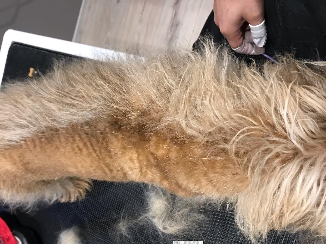 Wanneer heeft een hond een plukvacht? Dat is wanneer de hond een dubbele vacht heeft waarvan de bovenlaag niet vanzelf uitvalt. Deze bovenlaag moet er met de hand uitgeplukt worden. Dit is zeker niet pijnlijk voor de hond omdat het haar al los zit. De hond is “plukrijp” als u met gemak de bovenvacht los kan halen. De bovenvacht plukken word 1 keer per 3 maanden of 1 keer per 6 maanden gedaan, afhankelijk van de hond. Plukken is een trimmethode waarbij een laag volgroeide losse haren uit de vacht verwijderd worden. Dit zijn de dekharen, deze haal ik eruit om ‘ruimte’ te maken voor de nieuwe dekharen. Als deze dekharen niet worden geplukt, kan dit leiden tot irritatie of zelfs stank van de huid.