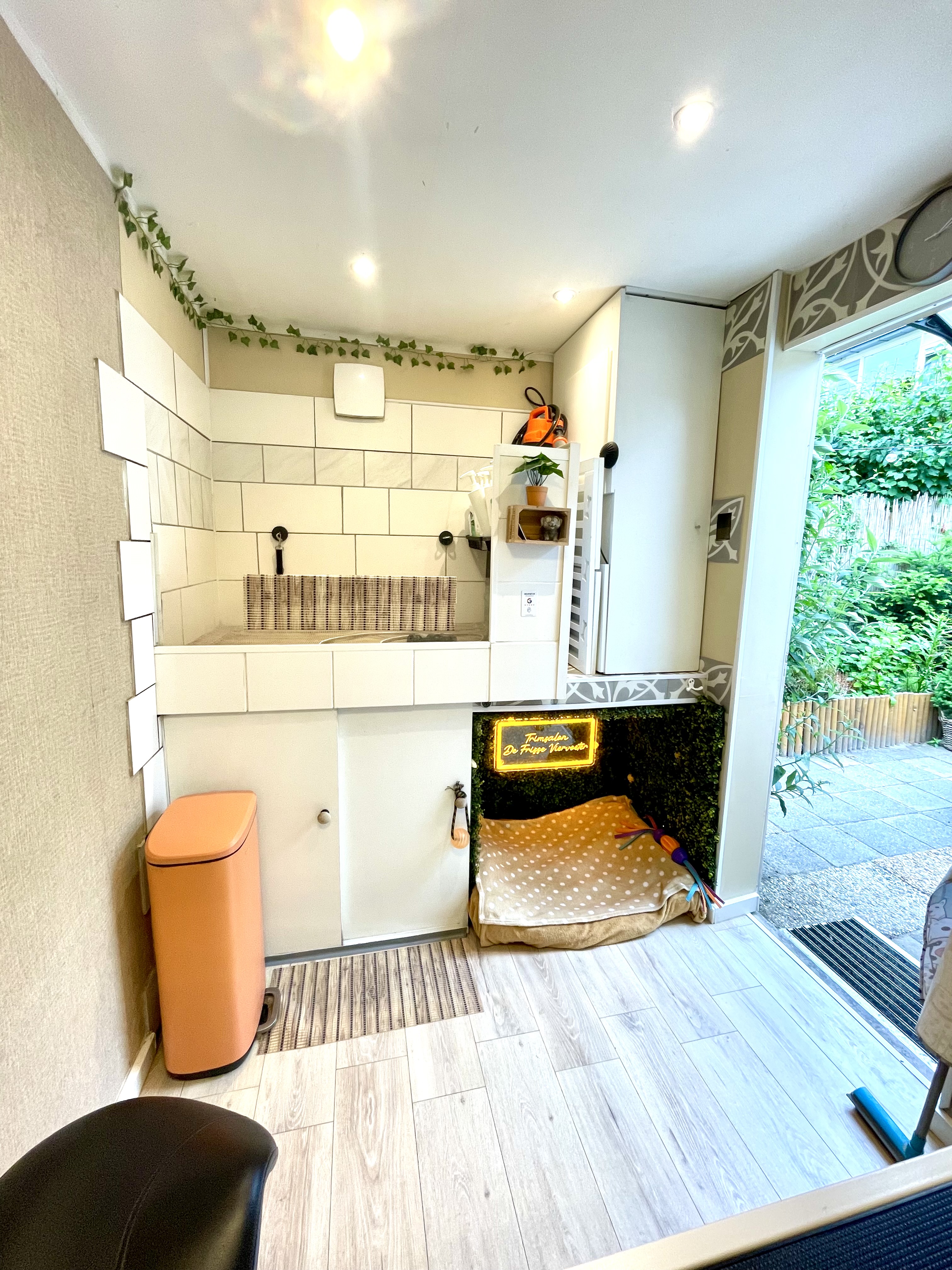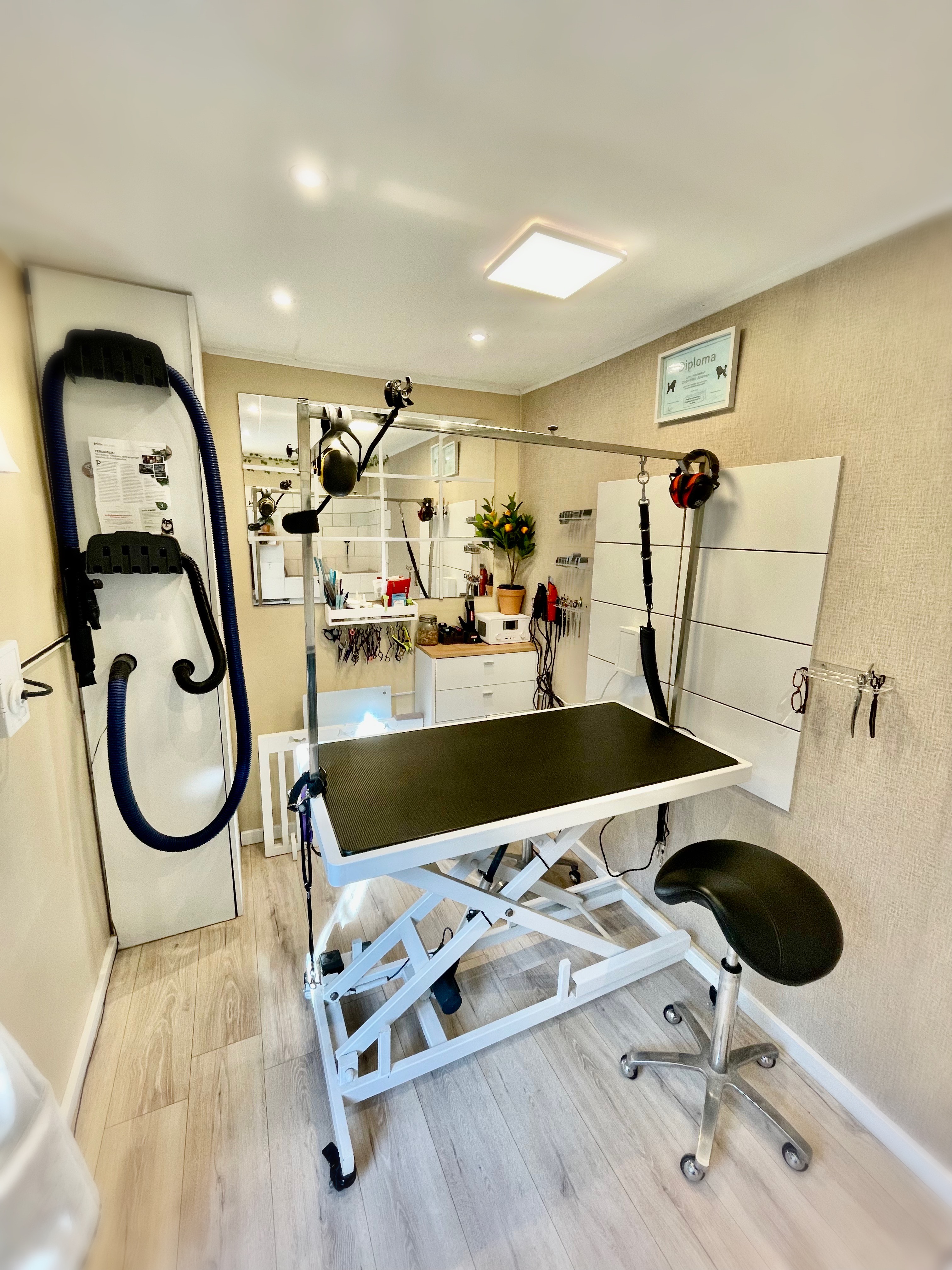 De trimsalon is gebouwd in wat voormalig de schuur was. Deze is helemaal leeggehaald en volledig gerenoveerd tot de mooie salon dat het nu is! Zie hieronder het verloop van de bouw en hoe de trimsalon uiteindelijk geworden is.